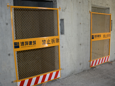 電梯井口防護網規格:防護網尺寸160cm*130cm 絲經400mm網孔5cm*5cm邊框2cm*2cm方管 電梯井口防護網表面處理:1.浸塑2.噴塑3.鍍鋅4.噴漆 電梯井口防護網顏色:黃色 電梯井口防護網用途:電梯井口防護網是建筑施工現場預防人身傷害必備的防護設施,它適用于各類建筑施工工地。