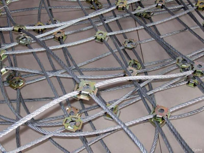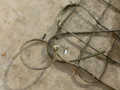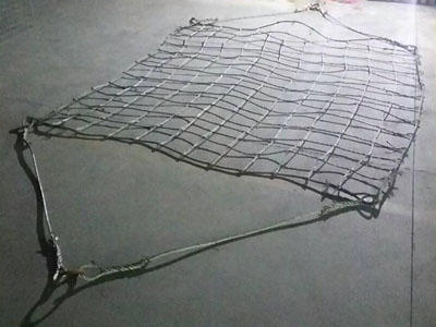 鋼絲繩網(wǎng)兜,又名船用吊裝網(wǎng)兜,礦石吊裝網(wǎng)兜。