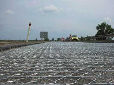 1.加緊網(wǎng)片是指編織鐵絲網(wǎng)的時(shí)候,在垂直或平行于編織長(zhǎng)向,加入與六角網(wǎng)絲同材質(zhì)的鋼絲的網(wǎng)片。加筋六角網(wǎng)片的拉伸強(qiáng)度高于普通六角網(wǎng)的網(wǎng)片,加筋絲直徑一般不小于邊絲直徑。安裝到路基上,尤其當(dāng)基礎(chǔ)張應(yīng)力很高的情況下,它能吸收并從根本上減弱有裂縫或交通而產(chǎn)生的張應(yīng)力縫值。